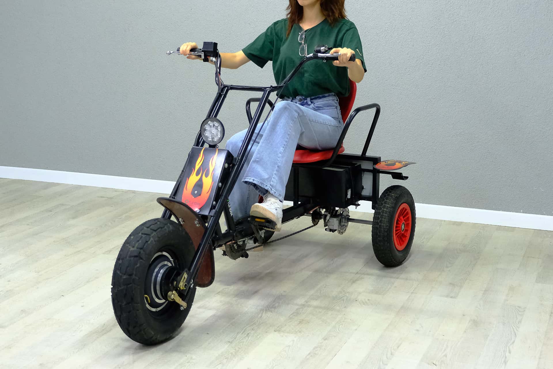 3 tekerlekli, chopper tarzı elektrikli bisikletimiz, motosiklet konforunu ve keyfini yaşamanız için tasarlandı. Önden çekişli elektrikli motoruyla güçlü bir performans sunuyor ve yetişkinlere yönelik olarak üretildi. Funbix Chopper ile yolculuklarınızı daha keyifli ve özgür hale getirin!